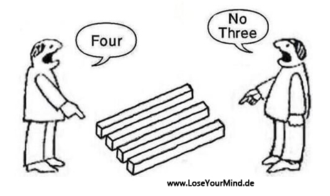 AllgemeinWir nehmen nur das wahr, was wir wahrnehmen wollen. Wer glaubt, dass es nur die eine Wahrheit gibt, liegt falsch. Dieses großartige Bild illustriert das perfekt! Die Kunst liegt darin, aus seiner eigenen Welt auszusteigen, um die Welt des anderen verstehen zu können. Wenn wir das schaffen, werden wir glücklichere Beziehungen führen. Im Privat- und […]